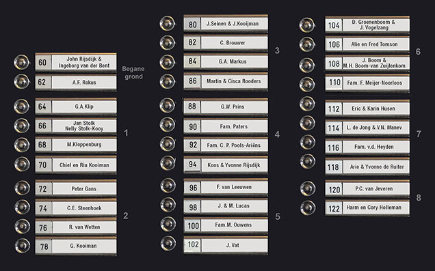 Al snel na de oplevering van het gebouw is door een grote groep bewoners met veel enthousiasme gewerkt om de entree van het gebouw een nog fraaier uiterlijk te geven. Ook de gangen van de bergingen zijn toen van vloer en wandtegels voorzien.